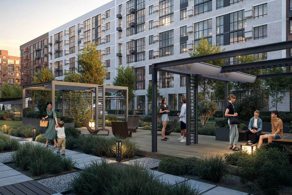 Жильцов ждут уютные зеленые дворы без машин, прогулочные аллеи, современные детские и спортивные площадки, беговые и велодорожки. Безопасность обеспечит круглосуточная охрана и видеонаблюдение. Комплекс будет состоять из элегантных домов с архитектурной подсветкой, что создаст камерную и спокойную атмосферу.